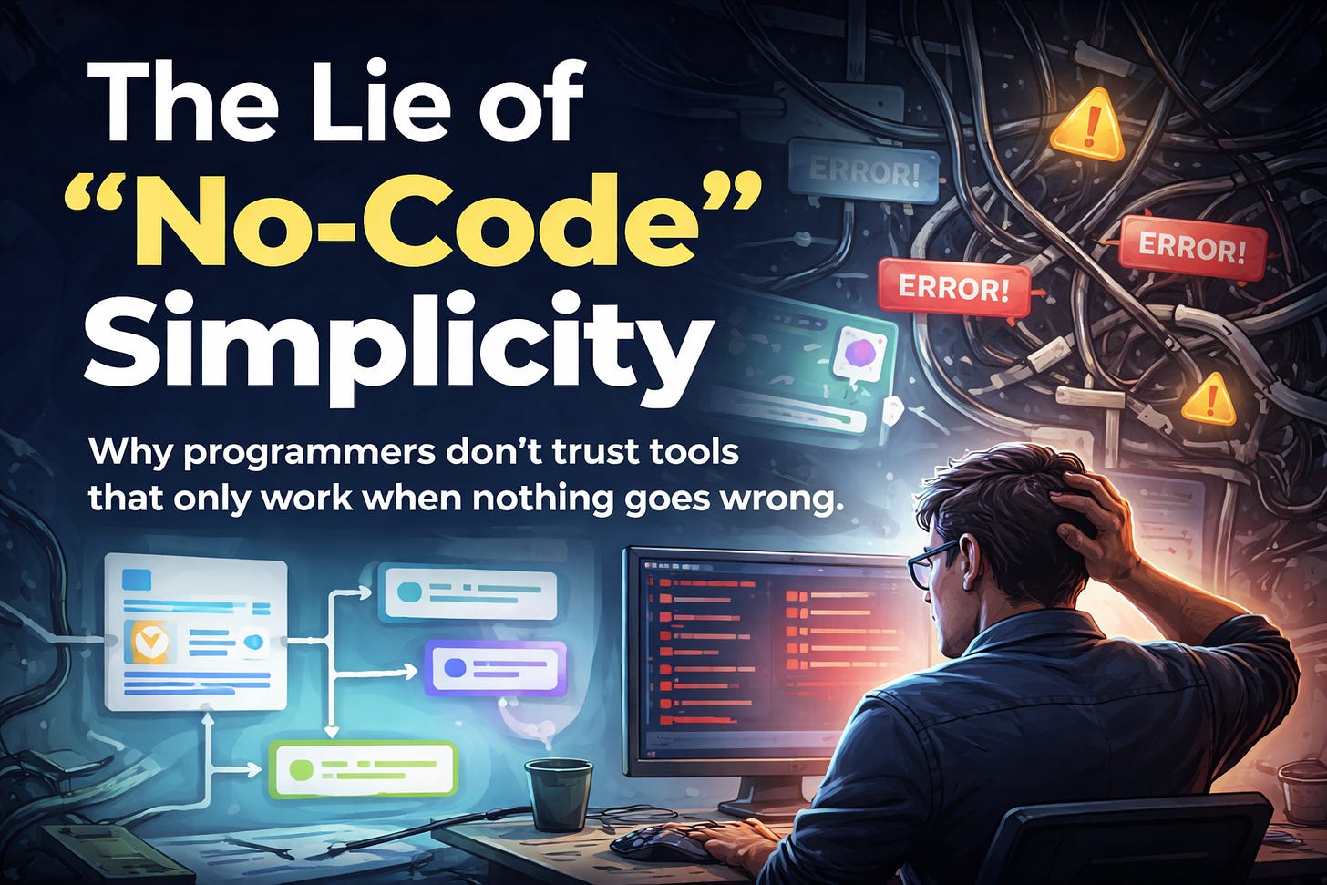 “No-code” tools promise speed, but they quietly remove the mechanisms that make failures visible.